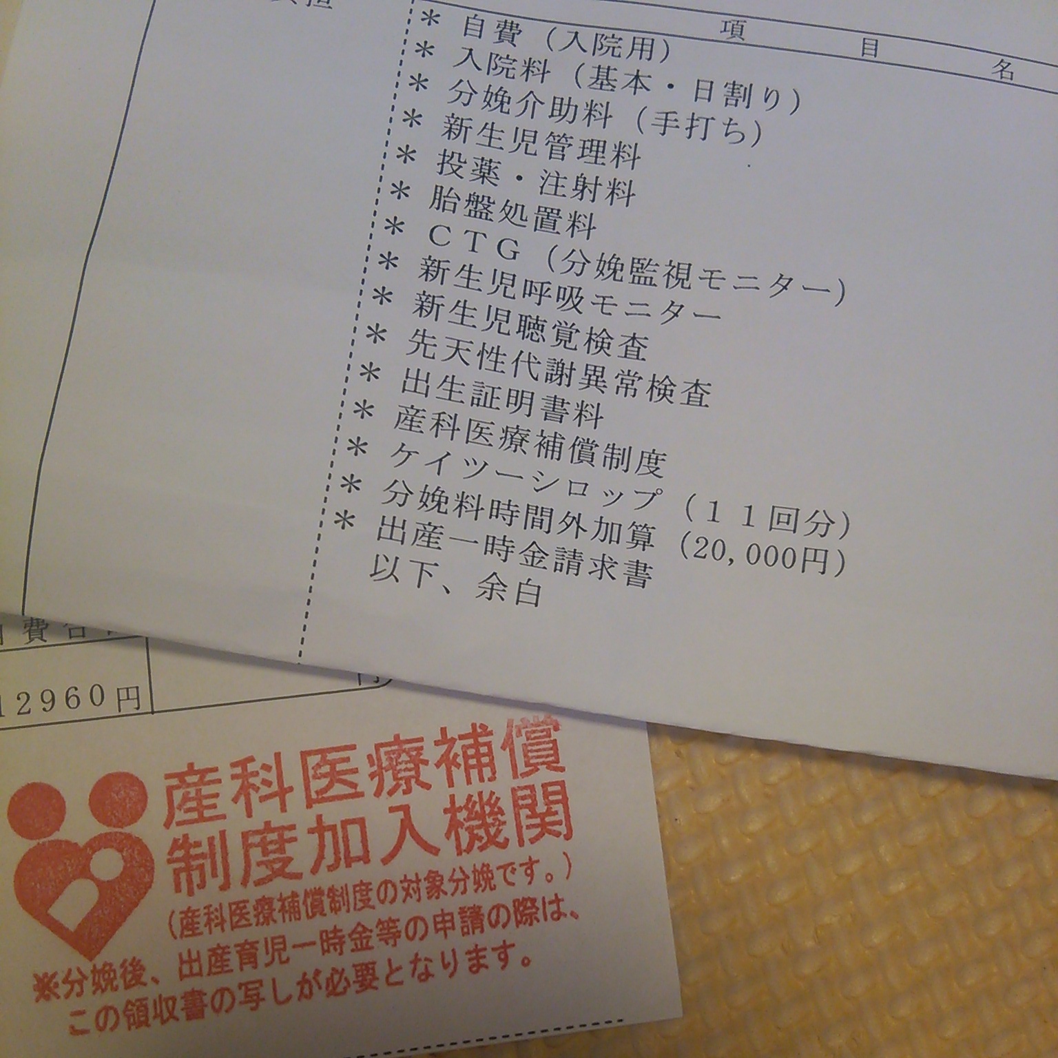- 経産婦(第2子)のため4日目退院。(お産当日が0日目)